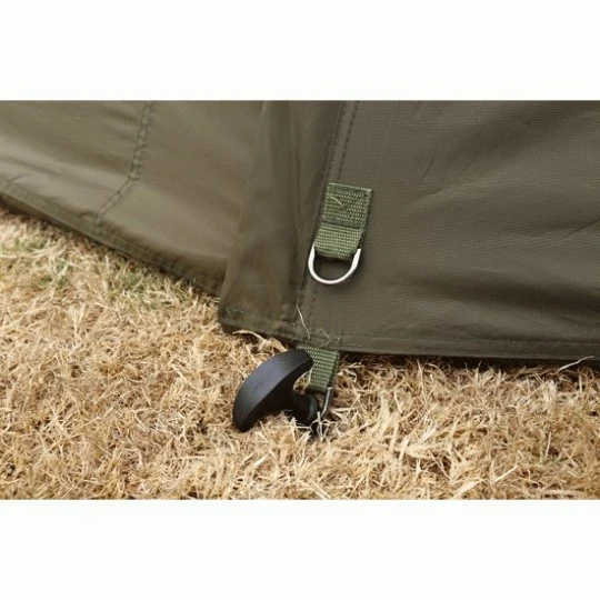 Biedt ongeëvenaarde kwaliteit voor de prijs Perfect shelter voor beginnende karpervissers en karpervissers met een krapper budget Ruimte voor twee standaard formaat bedchairs 8000mm HH waterdichtheid Twee baleinen ontwerpen een ruime luifel voor extra bescherming Inclusief full frame support Two-way letterbox deuropening met geïntegreerde mesh plus PVC en solide deur optie Voorkant kant worden opgerold waardoor er een open shelter ontstaat Twee rodstraps op voorzijde van shelter Lichtgewicht grondzeil en heavy duty haringen in een draagtas met rits.