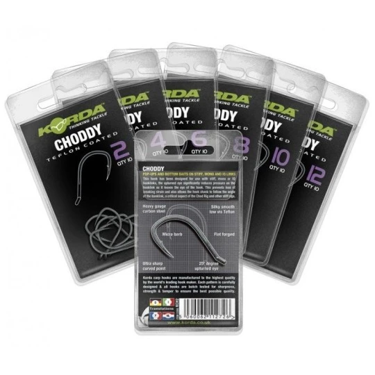 Dit is de haak om te gebruiken voor de populaire chod en hinged stiff rigs. Dit model heeft een naar buitenstaand oog en de punt is ongelooflijk scherp en betrouwbaar. Een hele sterke haak die gebruikt kan worden onder zware omstandigheden. Vissers zoals Etienne Gebel en Ernesto Kamminga gebruiken de choddy haak veelvuldig. Vertrouwen in je tackle is erg belangrijk, als je de grote openbare wateren bevist waar enorme karpers zwemmen. Neem daarom geen enkel risico maar kies voor de choddy! Doordat de punt van de haak iets naar binnen staat gericht en het naar buitenstaand oog, zal deze haak enorme houvast bieden tijdens de dril. Leer door middel van de stap voor stap artikelen hoe je dit type haak het beste kan gebruiken voor bijvoorbeeld de populaire chod rig.
