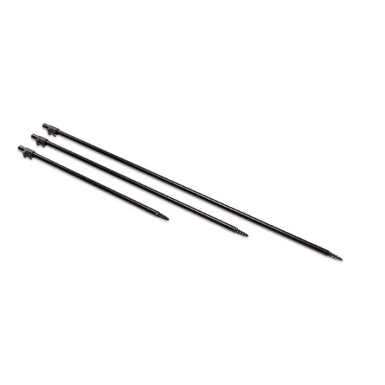 Mat zwarte bivvy sticks voorzien van de gekende, uiterst sterke schroefpunten voor harde ondergronden. Met een makkelijk te gebruiken grote sluitknop zelfs bij nat weer. Kan niet twisten dankzij de inkeping in de binnenzijde.