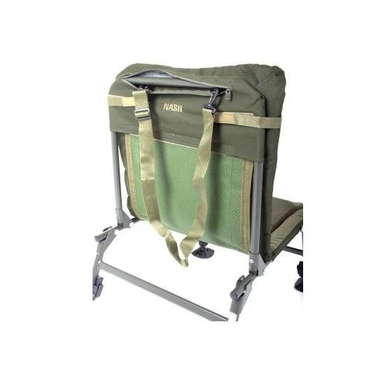 Nash Indulgence Nomad Ultra-Lite Vervaardigd van aero-grade aluminium en voorzien van een Air Lite mesh-matras bedekt met schuimdemping om het gewicht te minimaliseren. Aan de achterkant zit een ritsvak met daarin een draagriem. De Nomad Ultra-Lite is de enige stoel voor de mobiele visser. Afmetingen: 55cm (breedte zitting), 54cm (hoogte rugleuning)