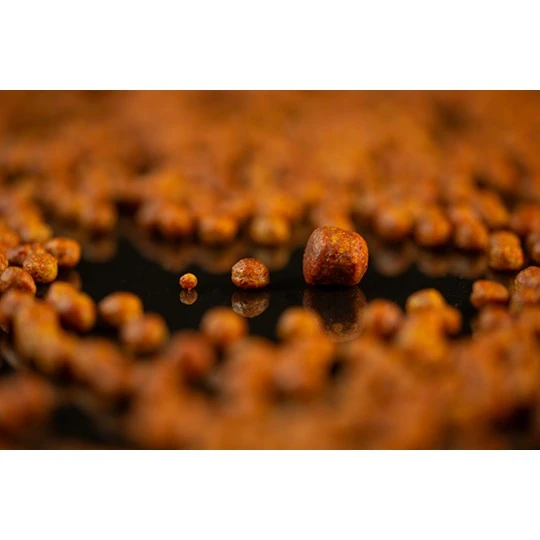 Met behulp van eiwitrijke pellets als basis, bedekken we elke individuele hap met een verleidelijke mix van oplosbare attractors, kleine voedseldeeltjes en visolie. Dit coatingproces in twee fasen werkt zodra u uw voer invoert. De eerste coating laat krachtige fragmenten van aas vrij die voedselsignalen over de oppervlaktelagen transporteren, terwijl de tweede zich een weg baant door de waterkolom en hopelijk karpers aantrekt om met meer vertrouwen te eten.