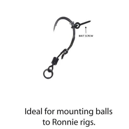 Het (harde) aas draai je gemakkelijk op het schroefje waarna het stevig blijft zitten. De TNT Bait Screw met Ring hebben een mat zwarte coating.
