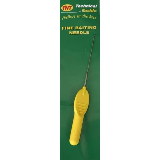 De TNT Baiting needle is een speciaal ontwerp en is gemaakt uit 2 verschillende diktes van gehard RVS staal. Deze naald heeft een ultrafijne punt en is iets zachter dan de Hard Baiting needle. Ideaal voor maden of delicaat aas dat anders zou splijten met het gebruik van dikkere standaard boilienaalden. Het subtiel afgewerkt oog verhindert het rafelen van de onderlijn. Aanbevolen voor het gebruik met dunne gevlochten onderlijnen (hair). Deze naald wordt voor ons gemaakt in de UK.