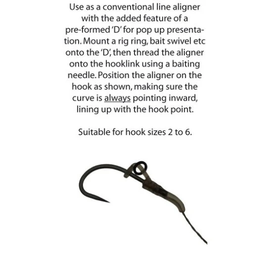 De Pop Up aligner is een klassieke line aligner maar met een voorgevormd plastic ‘D’ verlengstukje waaraan de pop up m.b.v. een rig ring of swivel bevestigd word.Â