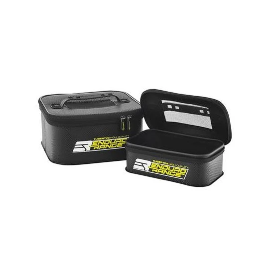 Praktische dozen in warmtedicht PVC “koolstofeffect” nuttig voor het bevatten van levend aas, dankzij het bovenste venster met net. Verkrijgbaar in twee maten: de middelgrote rechthoekige, de grote vierkante.